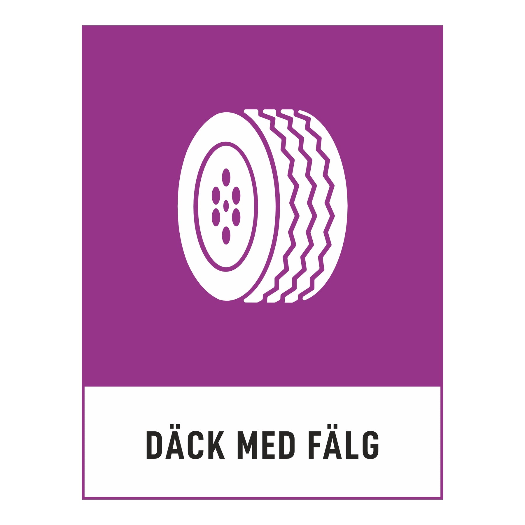 Skapa en tydlig och hållbar källsortering med den officiella europeiska standarden för avfallsmarkering. Denna skylt för Däck Med Fälg är en del av det gemensamma piktogramsystemet som gör återvinningen enkel och intuitiv för alla – oavsett språk eller förkunskaper.