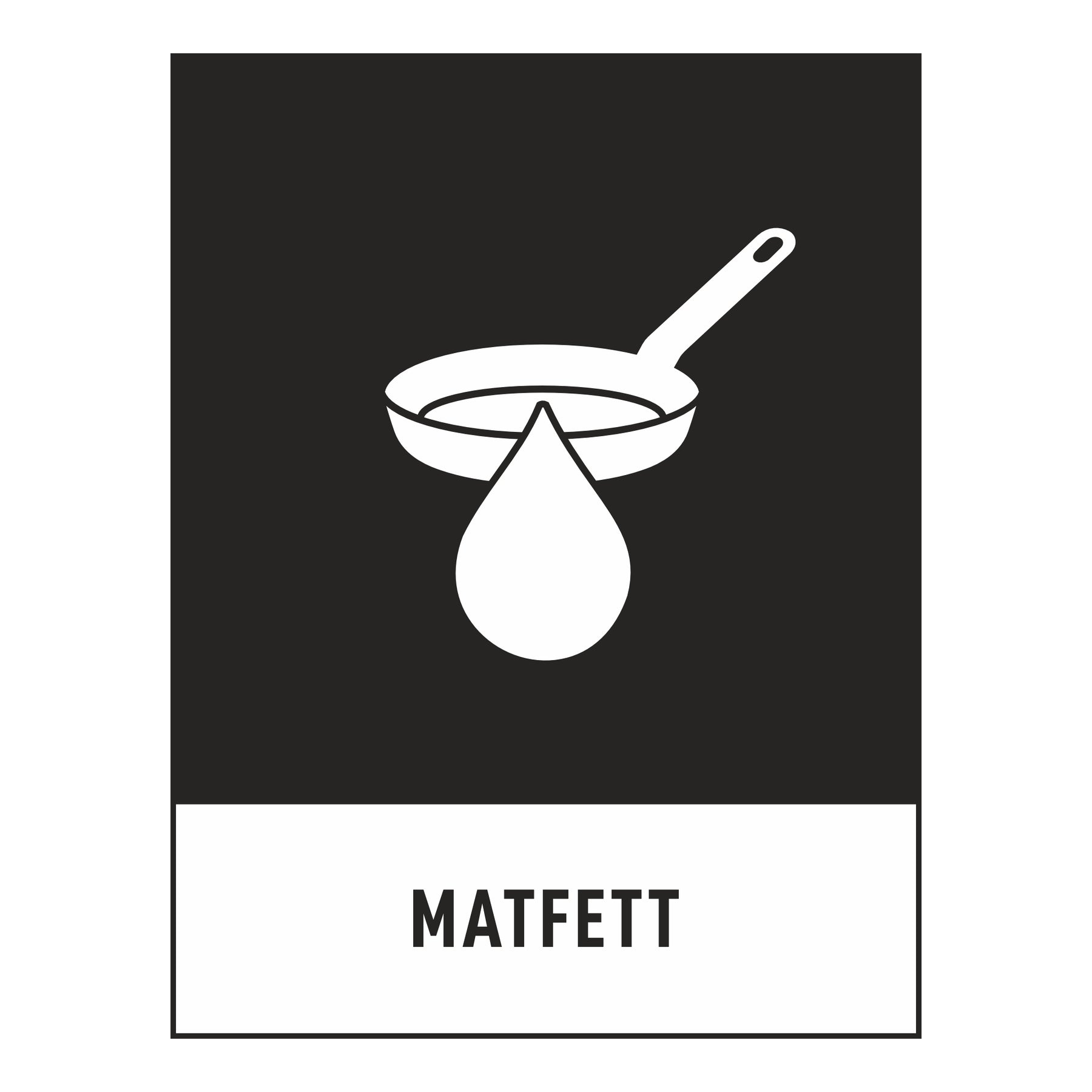 Skapa en tydlig och hållbar källsortering med den officiella europeiska standarden för avfallsmarkering. Denna skylt för Matfett är en del av det gemensamma piktogramsystemet som gör återvinningen enkel och intuitiv för alla – oavsett språk eller förkunskaper.