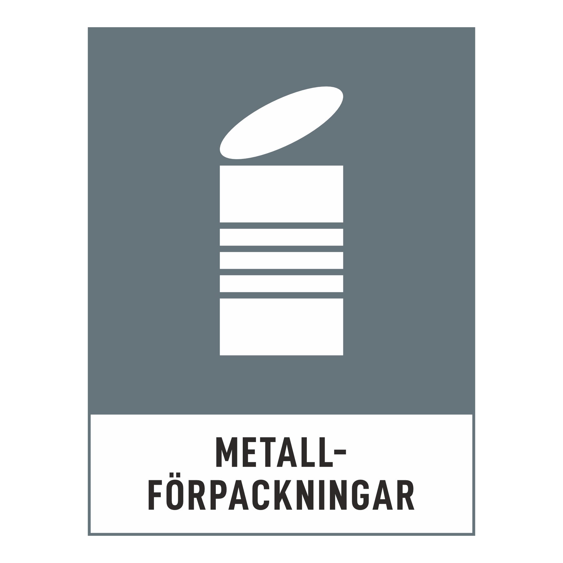 Skapa en tydlig och hållbar källsortering med den officiella europeiska standarden för avfallsmarkering. Denna skylt för Metallförpackningar är en del av det gemensamma piktogramsystemet som gör återvinningen enkel och intuitiv för alla – oavsett språk eller förkunskaper.